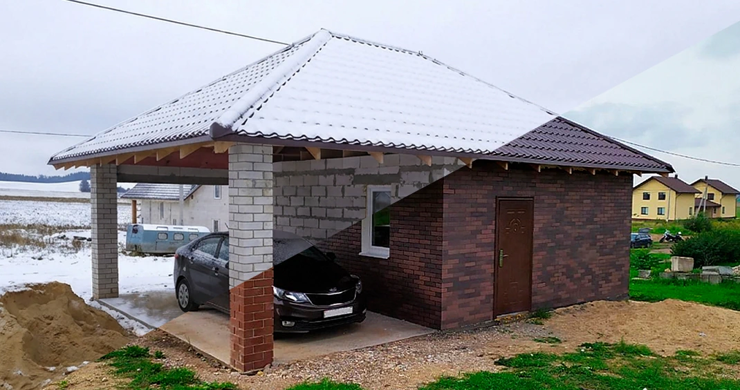 Отдельно стоит отметить, что отделка гаража панелями под кирпич часто выбирается вместо строительства из полнотелого кирпича «с нуля»: сначала возводится коробка из газобетонных блоков, а затем выполняется облицовка гибкими фасадными панелями. Такой подход позволяет решить вопрос, как недорого и быстро отделать гараж снаружи, при этом получить современный, аккуратный фасад, который хорошо смотрится в частном секторе и не боится осадков, перепадов температур и механических воздействий по нижней части стен.